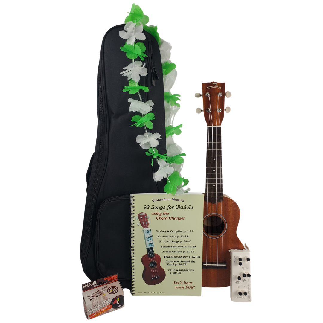 Shop Chord Changer and SongbookThe Ukulele Chord Changer fits soprano ukes and allows you to play the ukulele by pressing the chord changer buttons while strumming the uke strings.